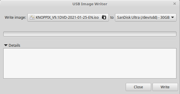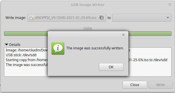 $ sudo dd if=~/Downloads/KNOPPIX_V9.1DVD-2021-01-25-EN.iso of=/dev/sdd bs=4096