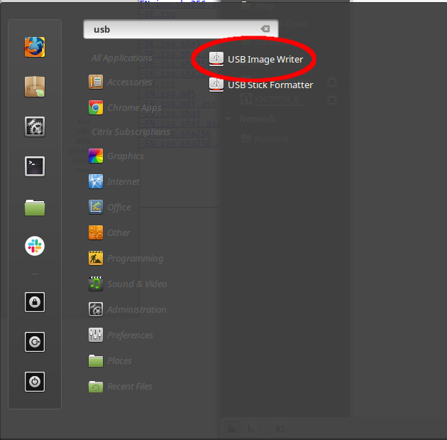Note: If it doesn't show up, make sure you have the "mintstick" package installed.