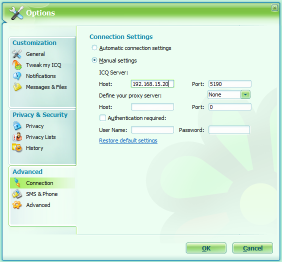 Interestingly though, ICQ offers a manual overwrite of the ICQ login server: