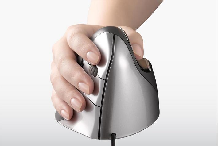 Colleagues and other professionals in the field all suggested an ergonomic mouse. But when a colleague of mine showed me his vertical (!) aligned ergonomic mouse (an Evoluent VM4R Vertical Mouse, link to AMZN product), I just had to shake my head.