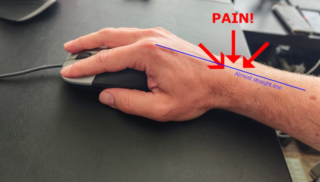 The fact that the end of the hand is now slightly rounded and "sits" on the mouse, relieves the wrist. The "straight line" is broken.