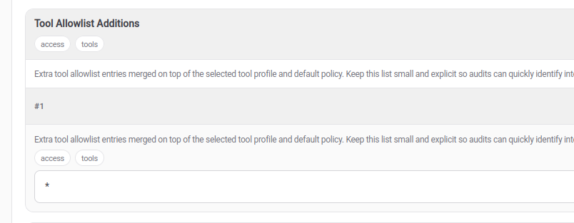 Find the "Tool Allowlist" section and add a new entry, where you add a wildcard (*) into it.