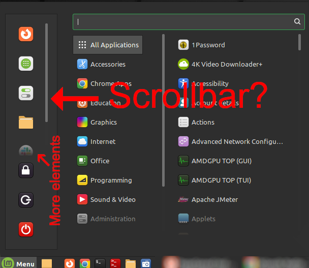 Scrollbar showing up in the "Favorites" in the Linux Mint Cinnamon Menu