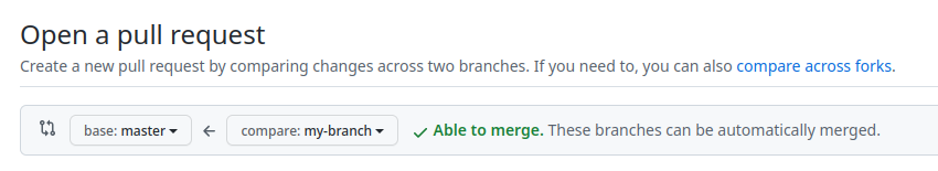 At that point, you have a new branch with just the changes. Go to your repository on GitHub in your browser (use the link from the output above), and create the pull request, making sure to point to your own branch.