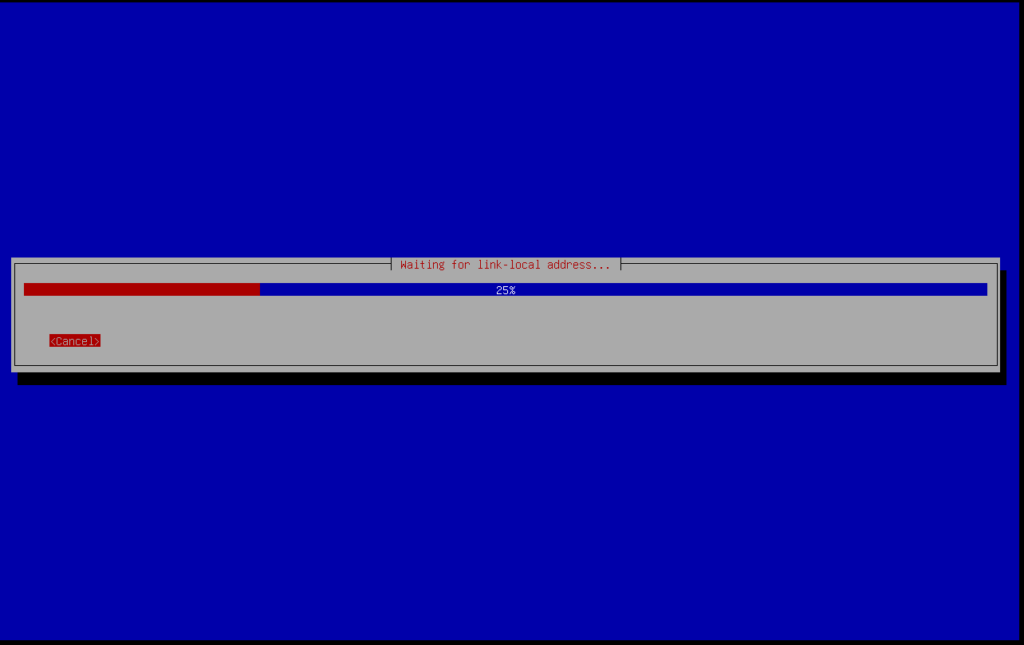 If you want to configure the IP address manually, you need to be really quick here and hit [ENTER] to use the <Cancel> selection.