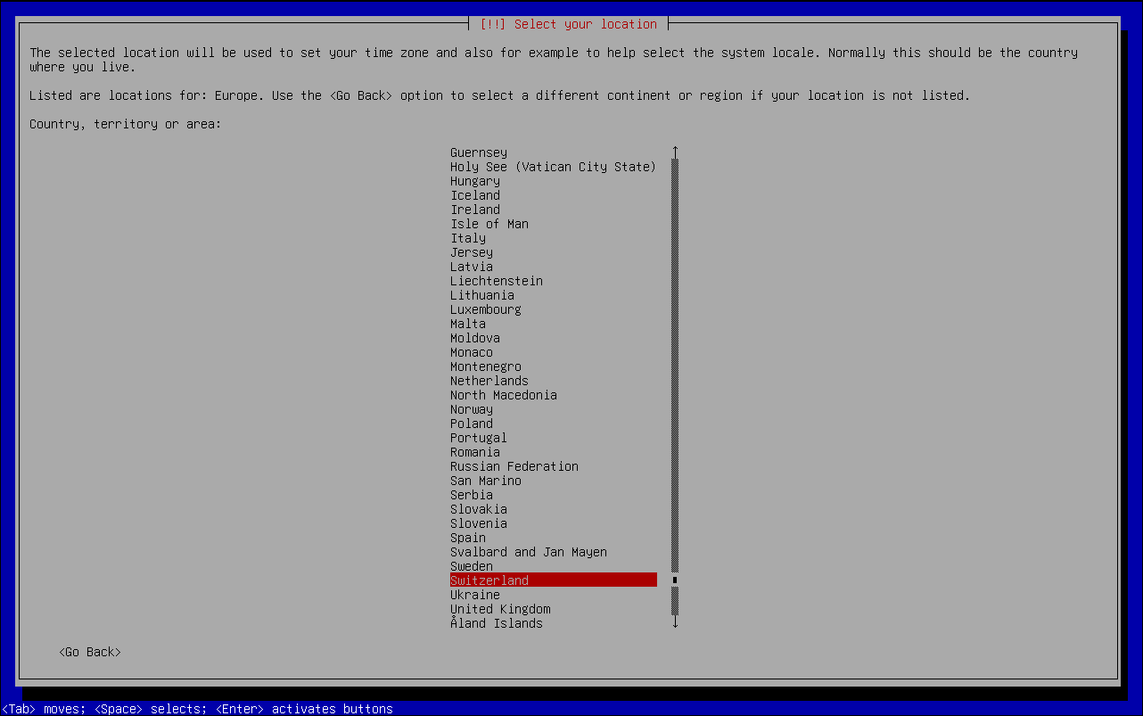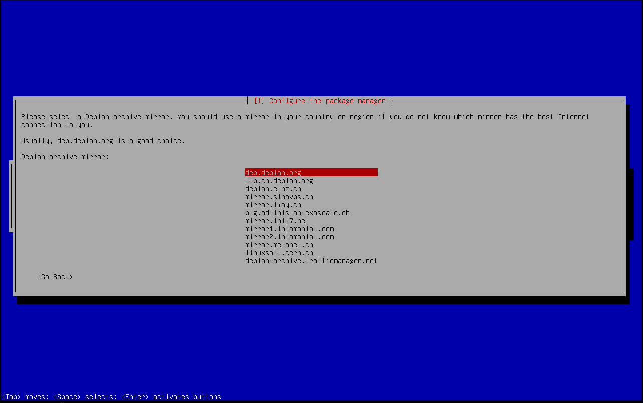 This is what the next step is about, you can choose a local mirror. In my situation I am choosing a mirror in the same or near my country, Switzerland.