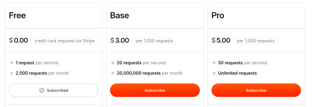 Once you've subscribed to a plan (note: even the Free plan requires a credit card) you can create an API key. Create a key and copy it (starts with BSA….).