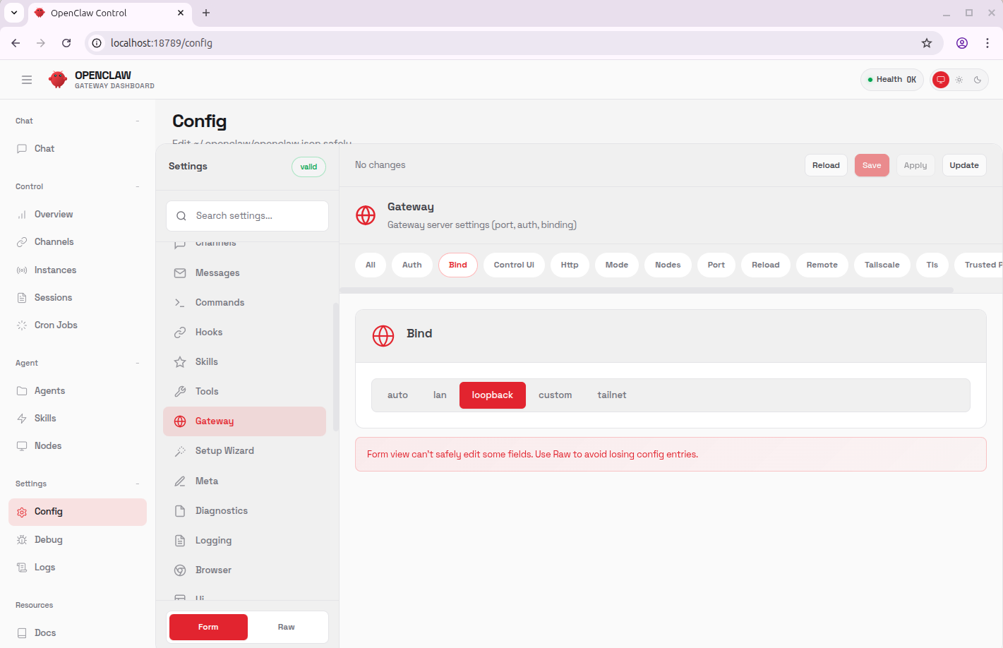 Note: Make sure to never give direct Internet access to this port (tcp/18789)!