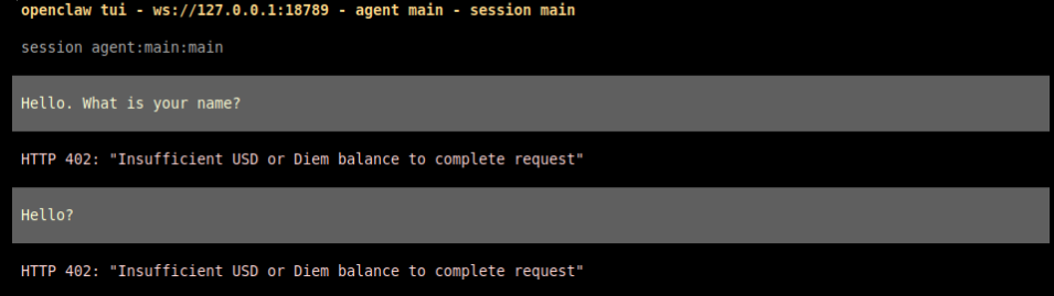 Now that openclaw is running, we can connect to the TUI (Terminal User Interface), which is the chat interface to interact with your OpenClaw bot.