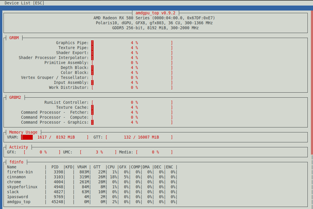 A few years ago, radeontop was THE command for AMD (formerly ATI) GPUs. However due to significant changes in AMD GPUs and lack of time of the radeontop maintainer (note: this is not shaming, it's just reality, we all have lives!), the project was forked into amdgpu_top in 2023.