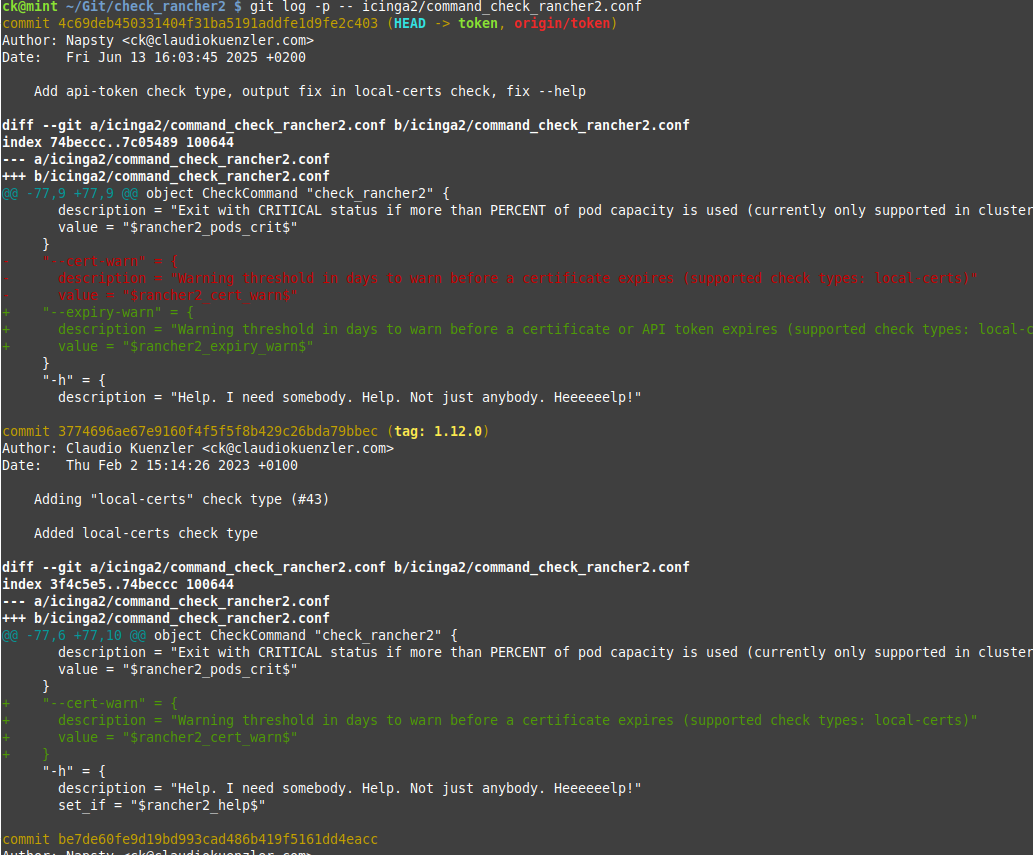 ck@mint ~/Git/check_rancher2 $ git log -- icinga2/command_check_rancher2.conf