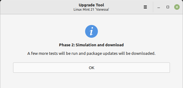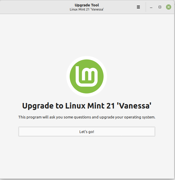 This opens up the Linux Mint "Upgrade Tool" in a separate window. The whole upgrade process is done using this graphical tool.
