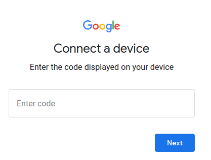 You can use a separate device or a computer to do this in a browser. Enter the code, shown in Kodi and click on Next.
