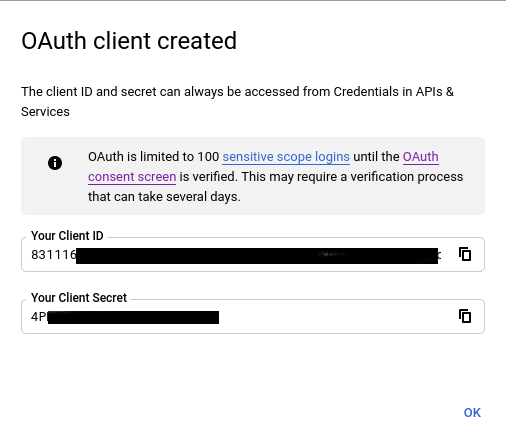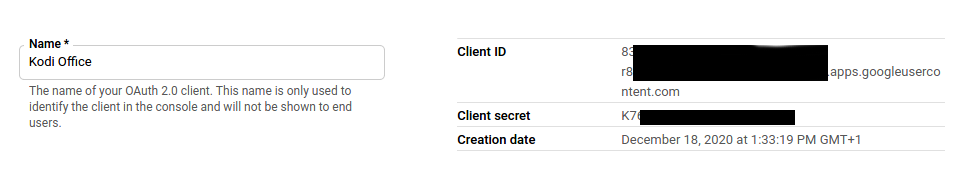 Copy the Client ID and the Client Secret, they will be needed in Kodi.