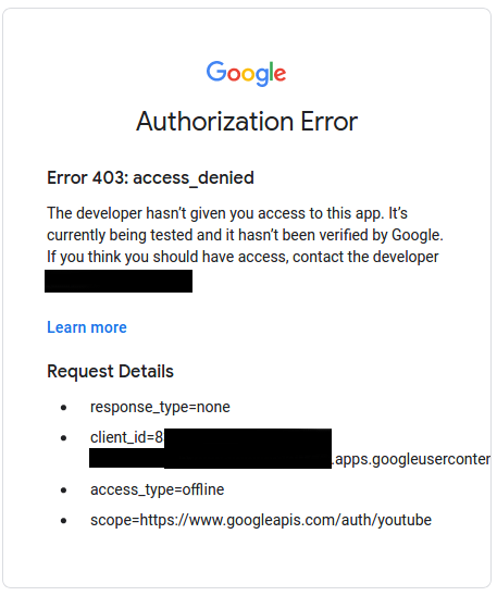 After you've entered the second code, you should get a different response in browser (Google hasn't verified this app):