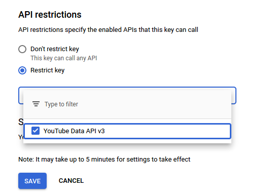 In this case, edit the API key and restrict the API key to a single API. In this case the Youtube API: