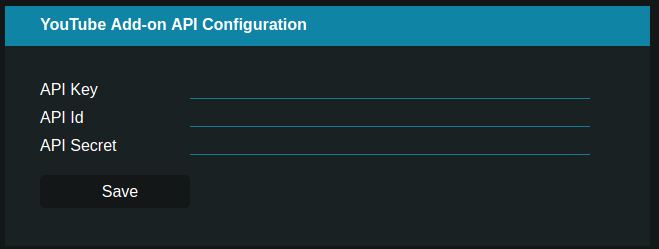 In a browser, enter the following URL: http://KODI-IP-ADDRESS:50152/api where KODI-IP-ADDRESS is of course the ip address of your Kodi device. This will show a form called YouTube Add-on API Configuration:
