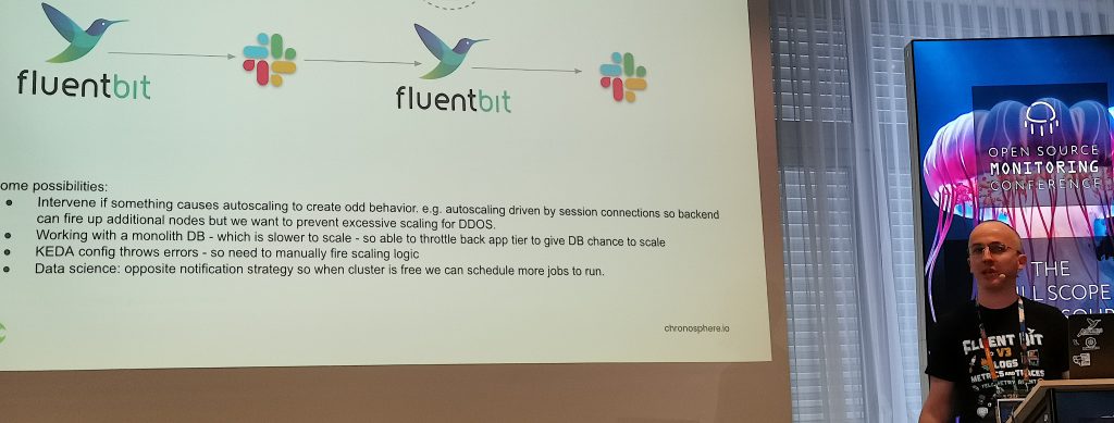 Next up was Patrick Stephen's presentation and introduction of Fluent Bit and how this integrates into ChatOps. I was glad I attended this presentation because finally, after years of having heard of Fluent Bit, someone could in a few sentences explain what it actually is and does.