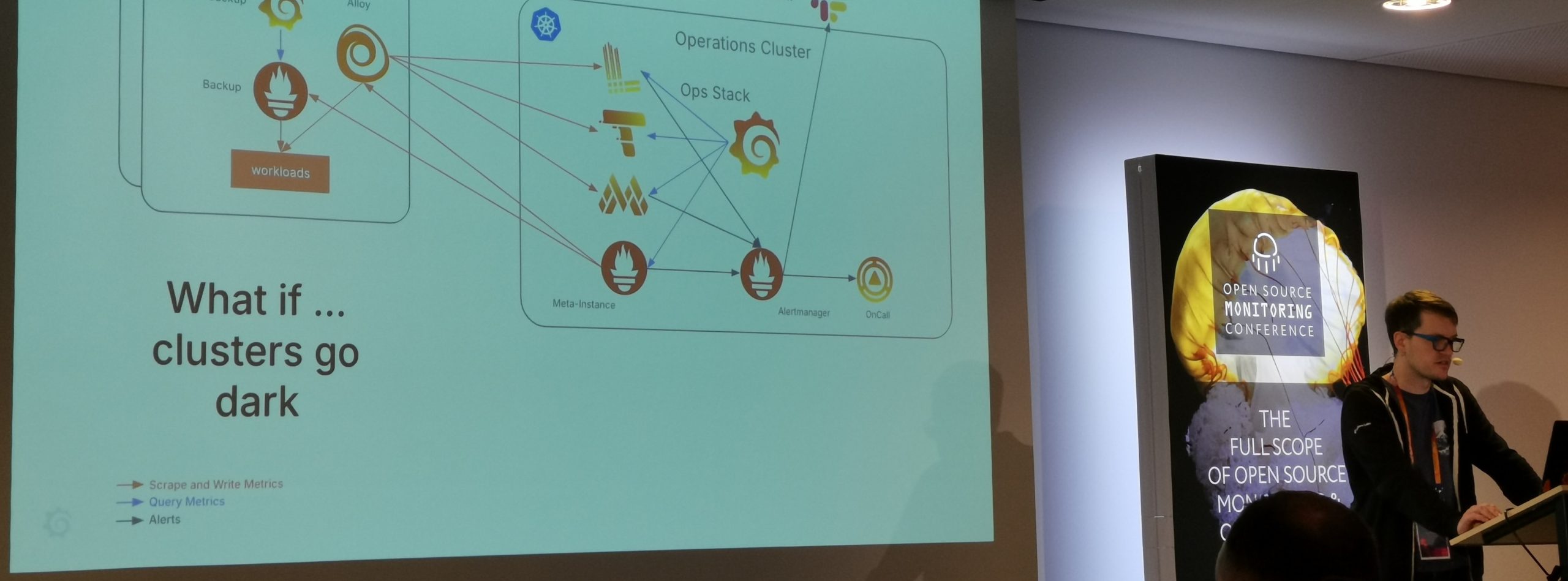 Many questions, many answers, several attempts but after all a great and interesting story telling from Erik Sommer. The most interesting fact was the "Meta" Prometheus instance, which Grafana labs uses, to scrape data from all other Prometheus instance and serve as the "global view" instance.