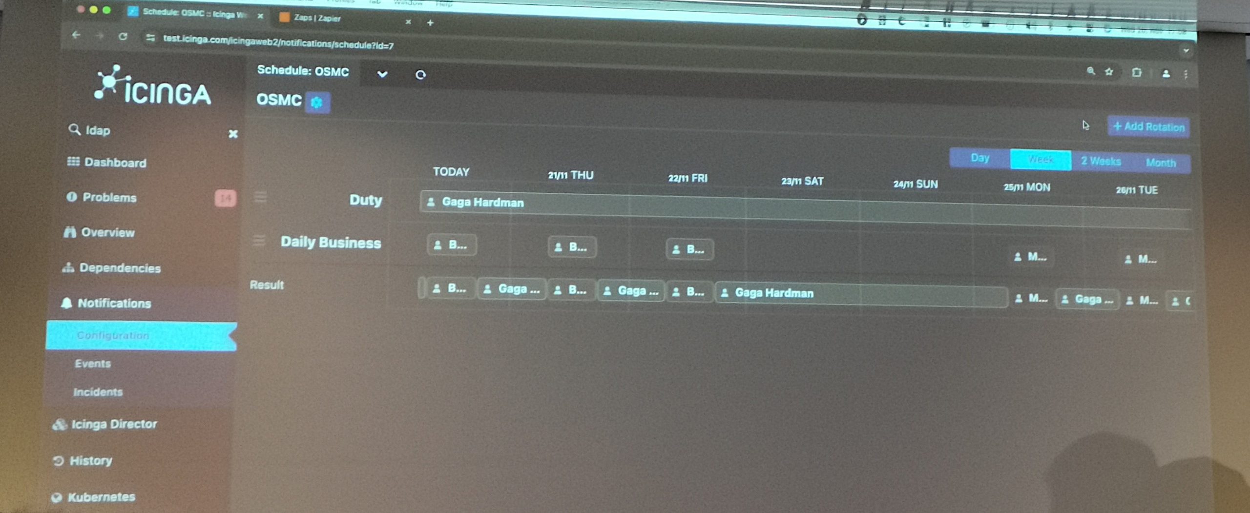 One of the greatest features of this module is the "Channel" configuration, allowing to separate multiple ways of how a notification should be sent. This can be a classical e-mail notification or can be a webhook to a service. Bernd showed an example where he used a Zapier webhook to handle notifications from Icinga. As this is all part of the notification module, no additional scripts need to be created and maintained. Nice, this is really a great enhancement!