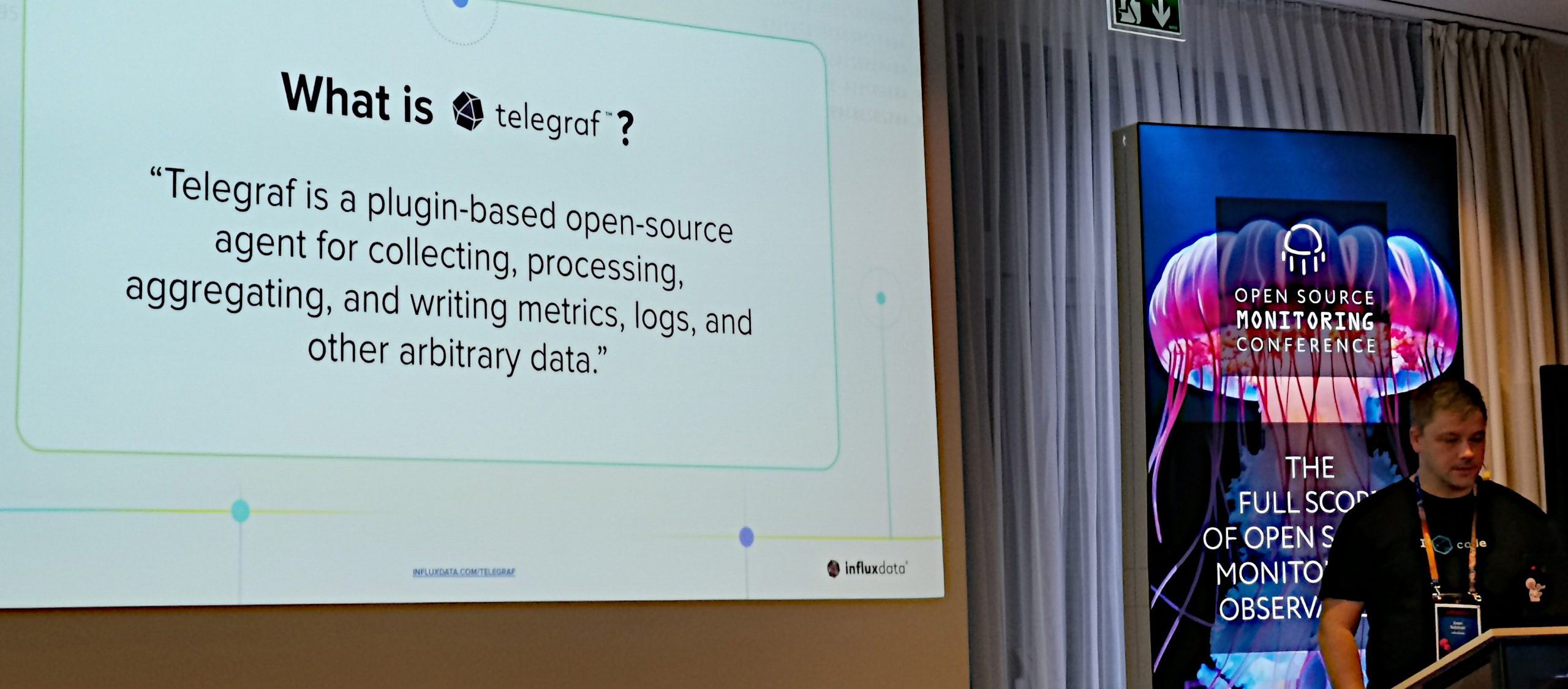 The following presentation switched back to metrics based observability. Sven Rebhan from InfluxData presented and and introduced Telegraf to the crowd.