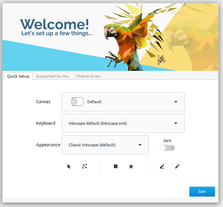 When you start Inkscape the next time, you will be greeted by a startup-screen where Inkscape wants to do define some base settings: