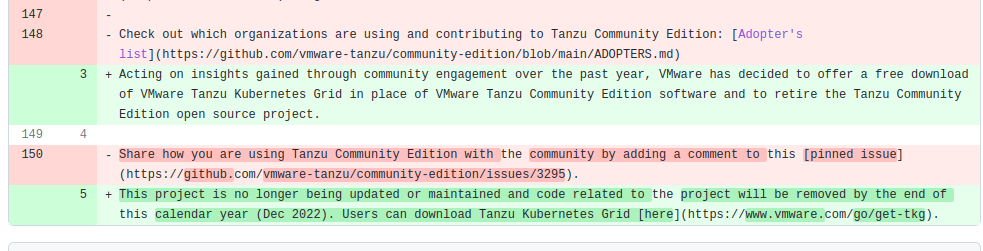 VMware, the well known software company behind vSphere virtual machines, has decided to put a stop on the open source project "Tanzu Community Edition".