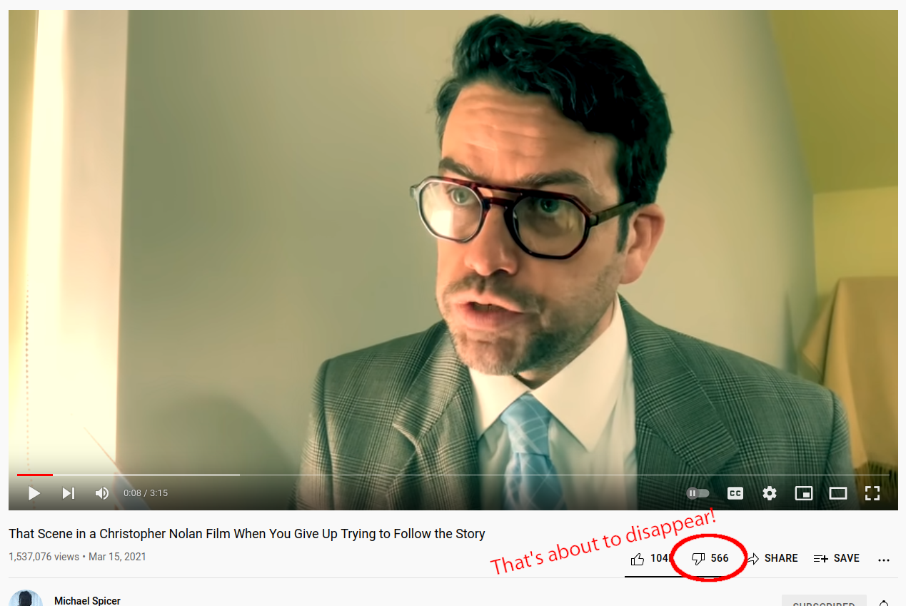 YouTube video with dislike count. Image courtesy YouTube/Michael Spicer.